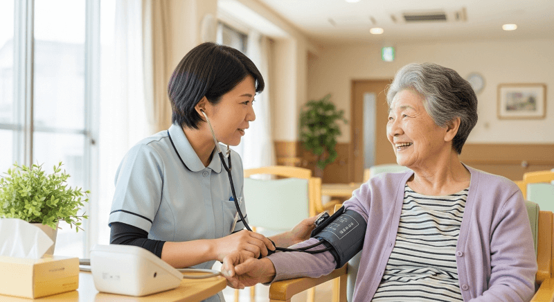 日々の体調変化に配慮しながら、入居者の皆さまが安心して生活できる環境づくりを大切にしています。